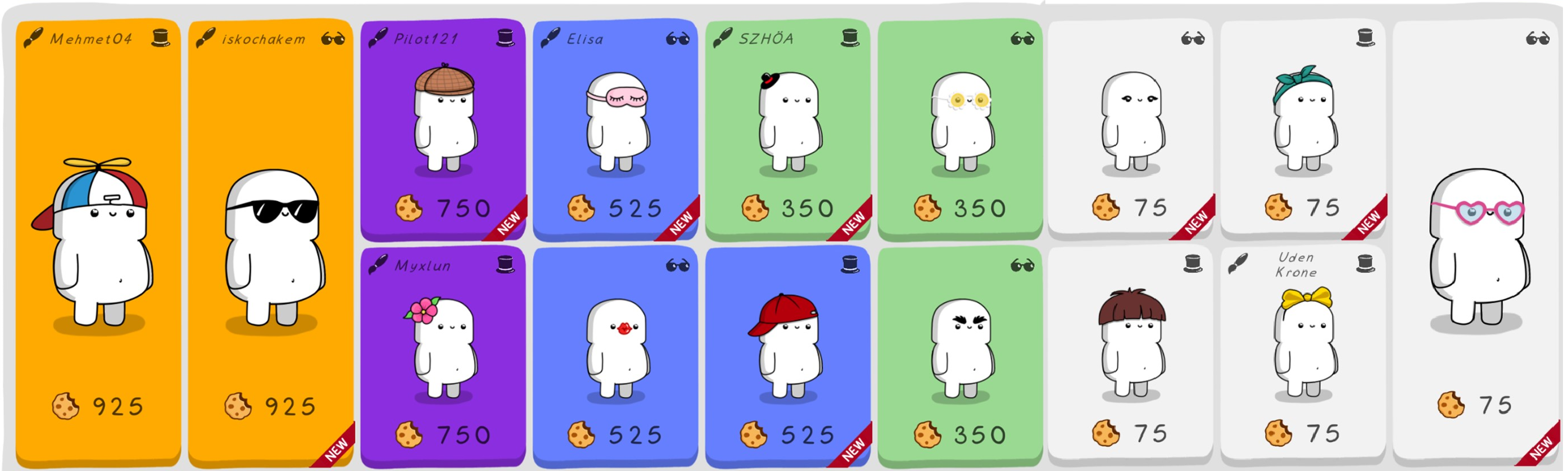 Market: There are also new costumes added to the market now. As usual, we take some of the old costumes out of the market to make room for the new ones. Have you collected enough cookies to get what you want?