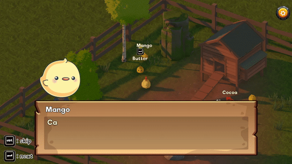 Increased the range of interaction with other characters in the farm, but requires Peppermint to be facing in their general direction.