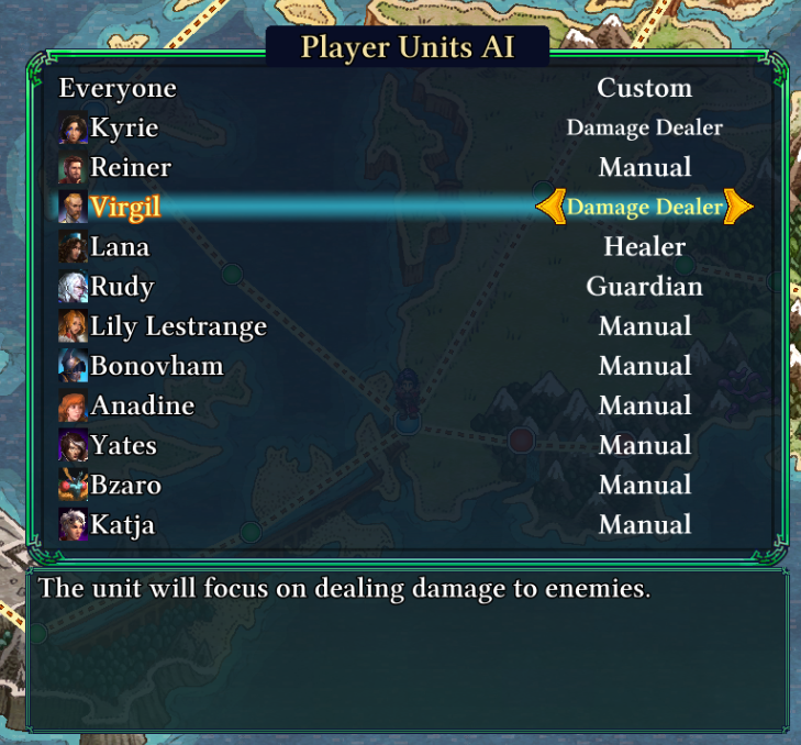 Unit Number: When pressing the "details button" in combat, each unit will be assigned a number based on their order in the turn bar and that number will be shown over their portrait and sprite on the map. This will help quickly seeing whose turn is coming soon by looking at the sprites only, as well as differentiating any sprites that might have the same portrait.