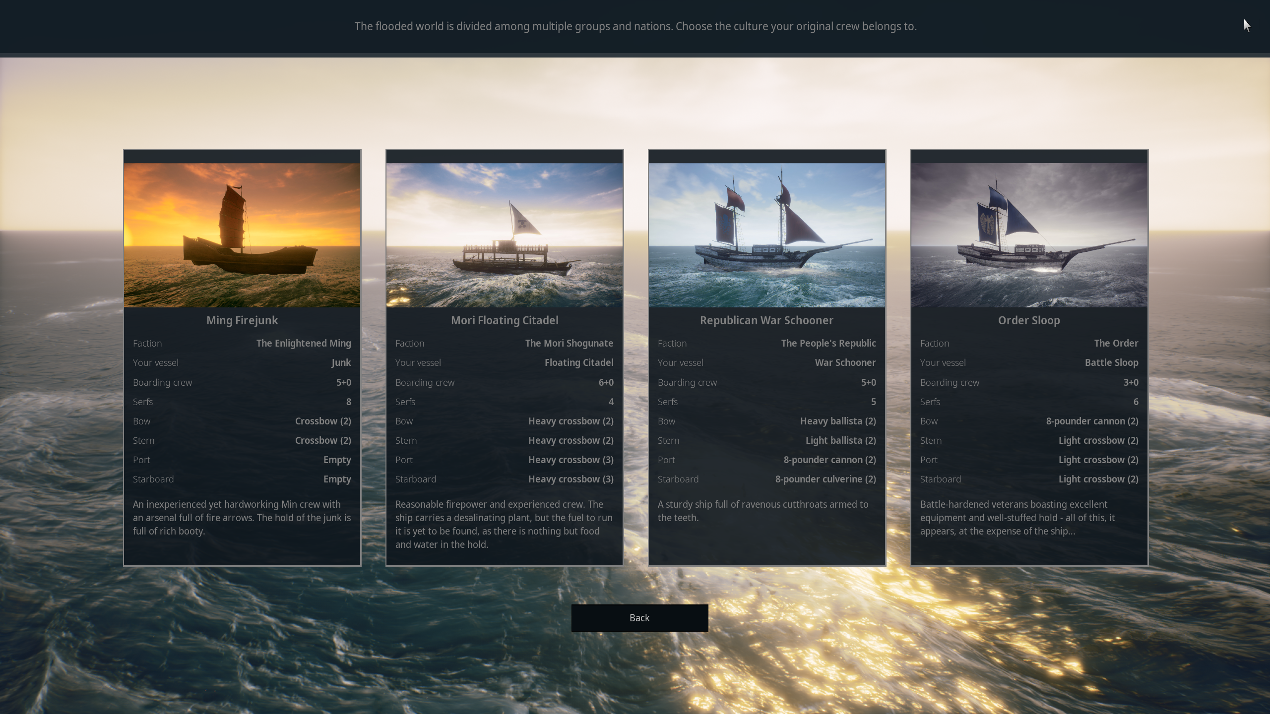 The system starts with fairly simple features: those captains either sympathize with you, or not really, but eventually it will be developed in a much bigger mechanics. Right now the attitude towards you will be determined by nationality (this is the kind of thing that will survive in any Flood), as well as your behavior.