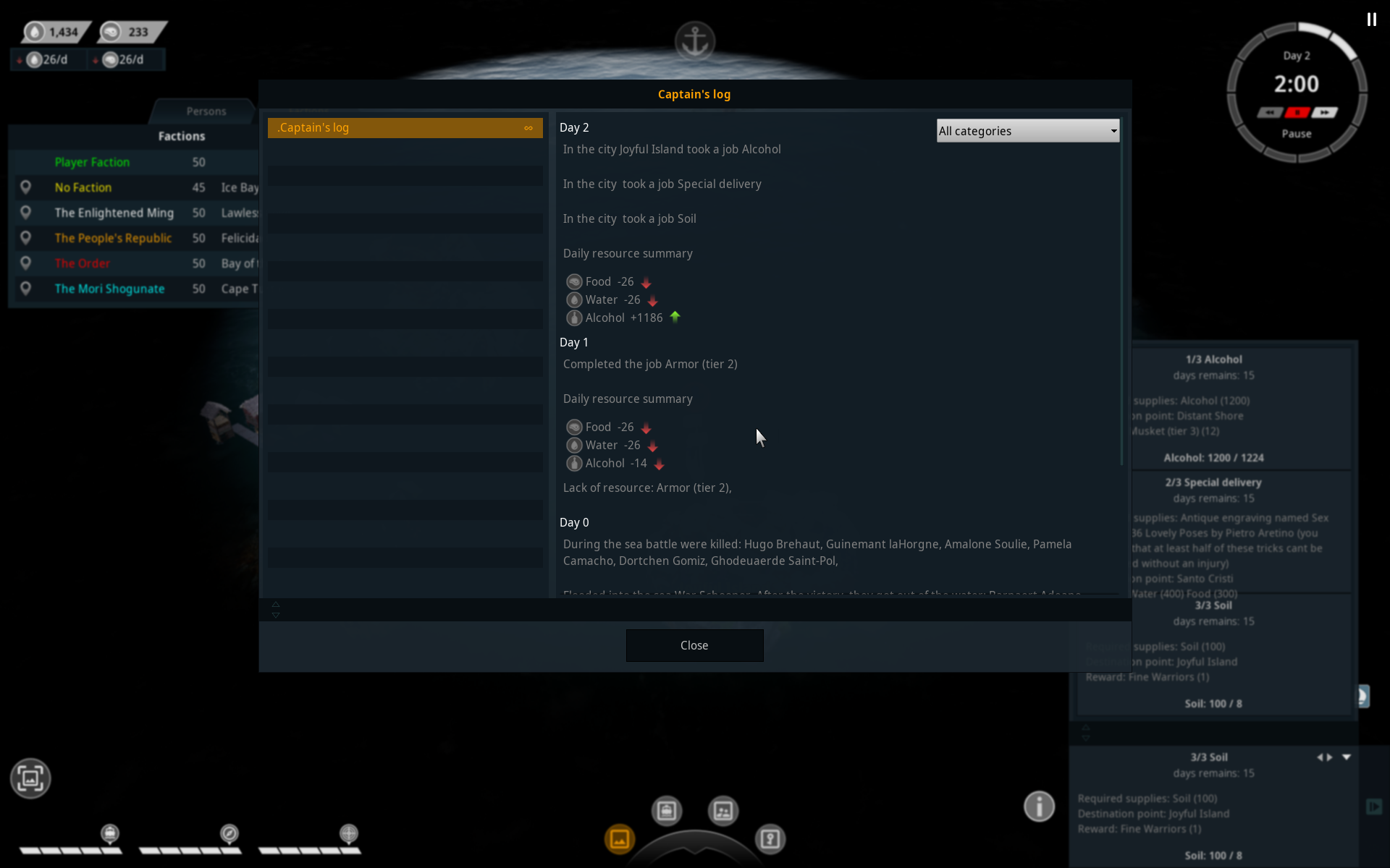 Diversified and improved main captain's journal. Now you can track damage to the ship, crew changes, resource usage and a lot of other options. You can choose a category and track a whole day changes on the ship.