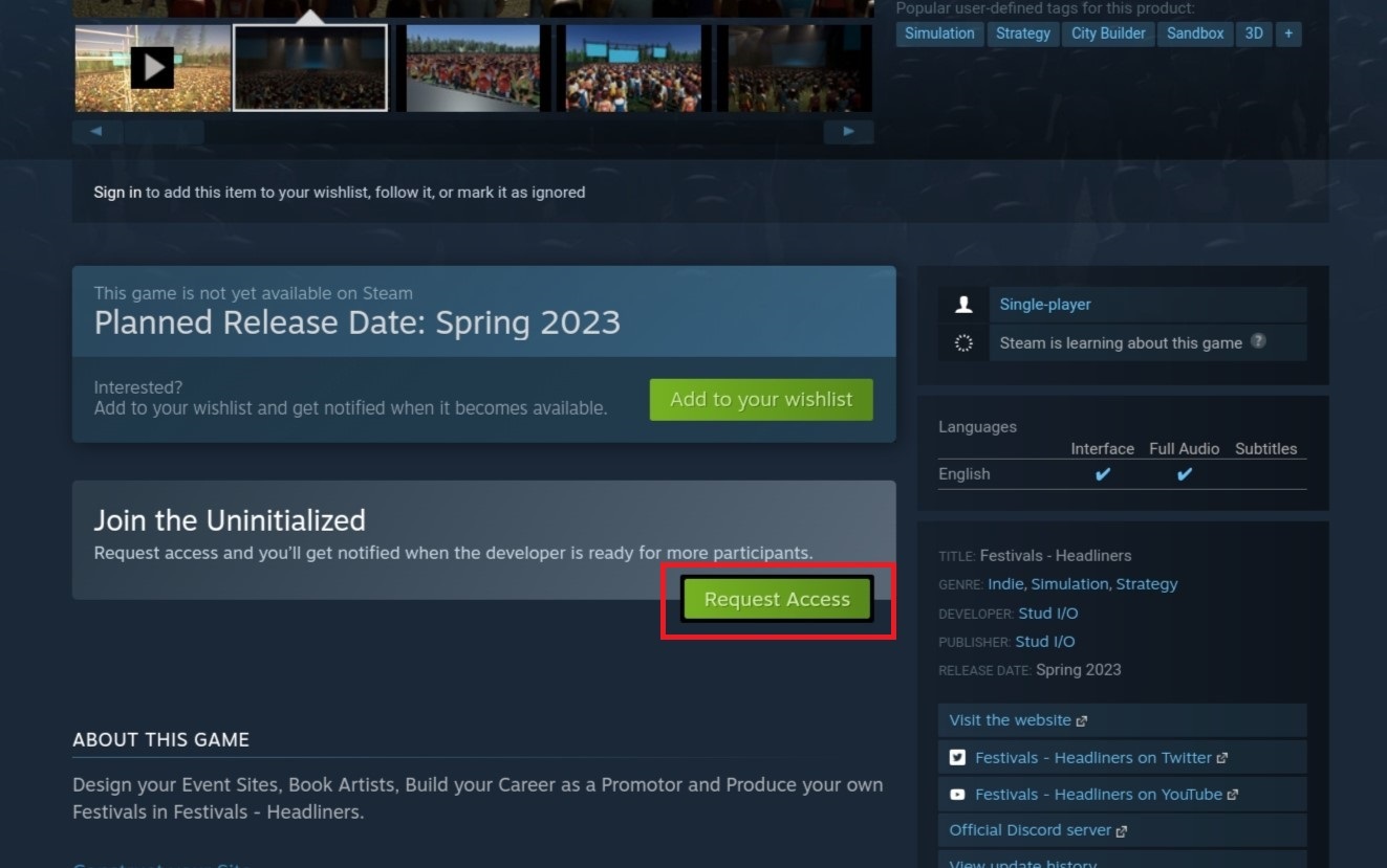 As you may know, we’ve been alpha testing the initial versions of Festivals - Headliners since the start of this year. We used a complicated system with a Google form and custom scripts and emails to send out Steam keys, which would grant alpha testers access to the game.