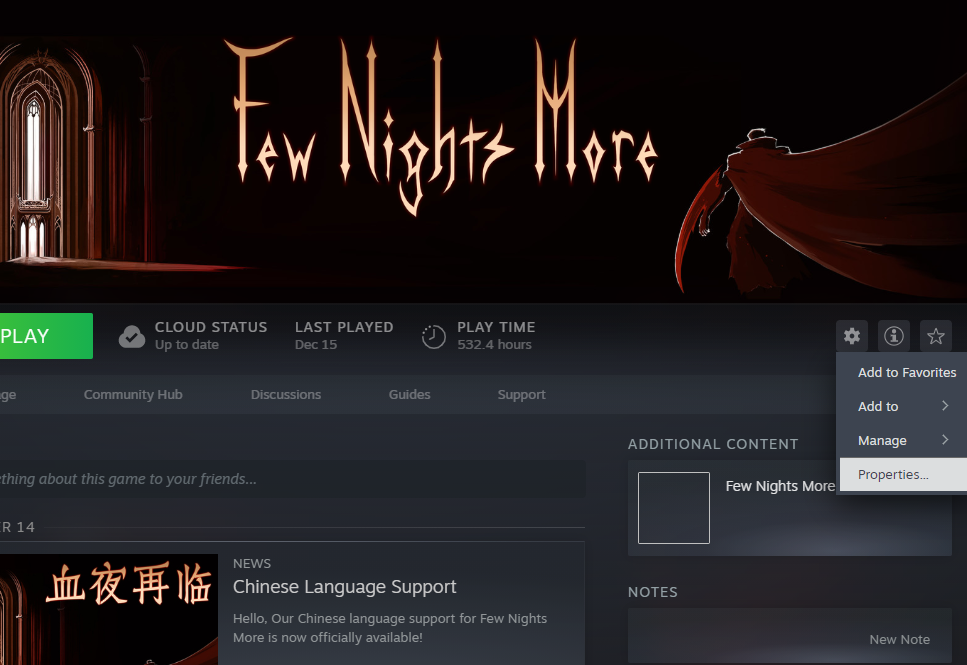 Hello, Our Chinese language support for Few Nights More is now officially available!