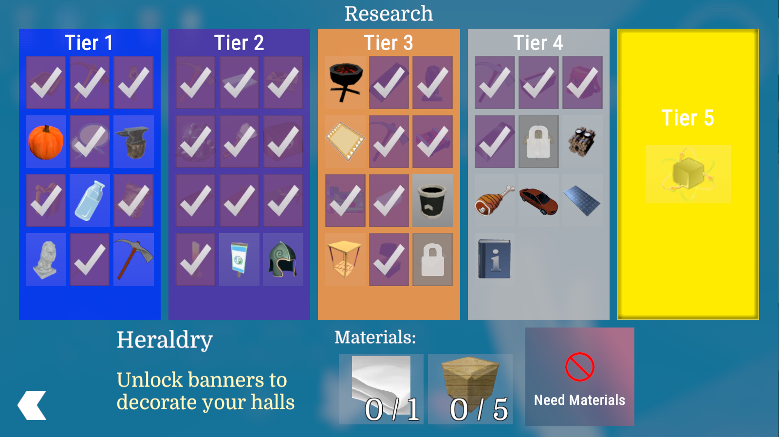 Research and Crafting Plans were too similar. Even though underneath these are very similar, the experience and feel they give should be different. We added a new research screen which can show off all the Researches in the game, and show which are available. It has a UI designed to fit better with Research including a larger vertical progress bar to more easily visualize the longer times that Research takes