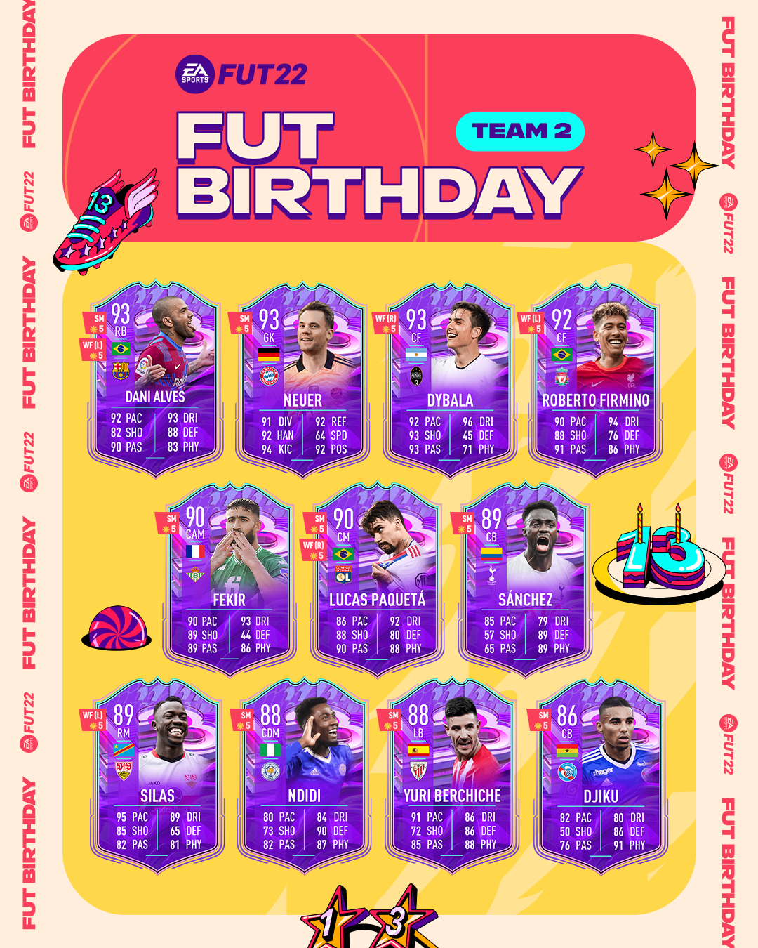 Celebrate 13 years of FIFA Ultimate Team as some of football’s biggest names get a birthday boost and a 5-star skill move or weak foot upgrade. Join the party now in FIFA 22!