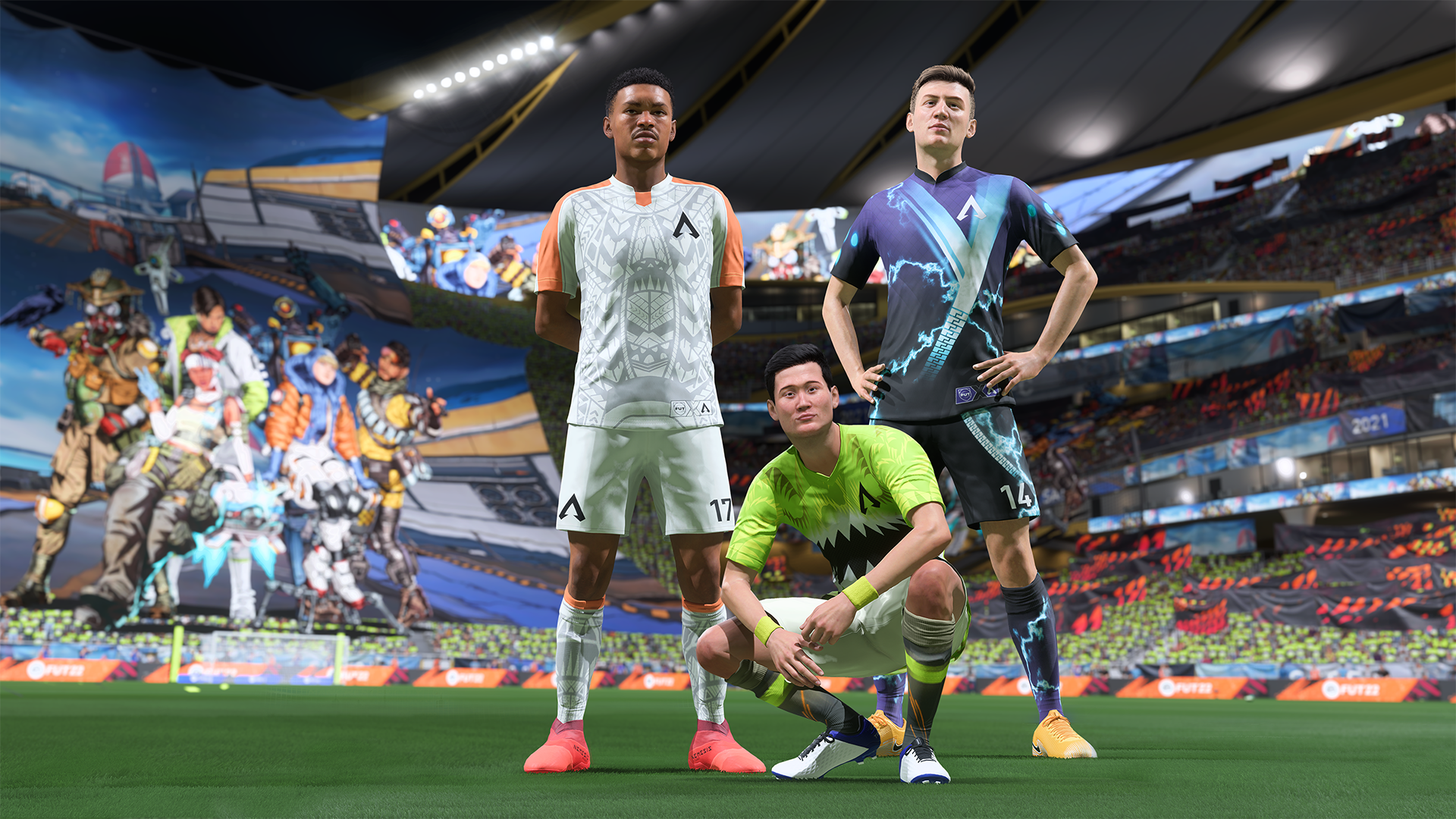 The shielded fortress, interdimensional skirmisher, and high-speed devil drop into FUT 22 with legendary kits inspired by Gibraltar, Wraith, and Octane. The Legends Collection also includes themed badges, Tifos, and more to transform your stadium.