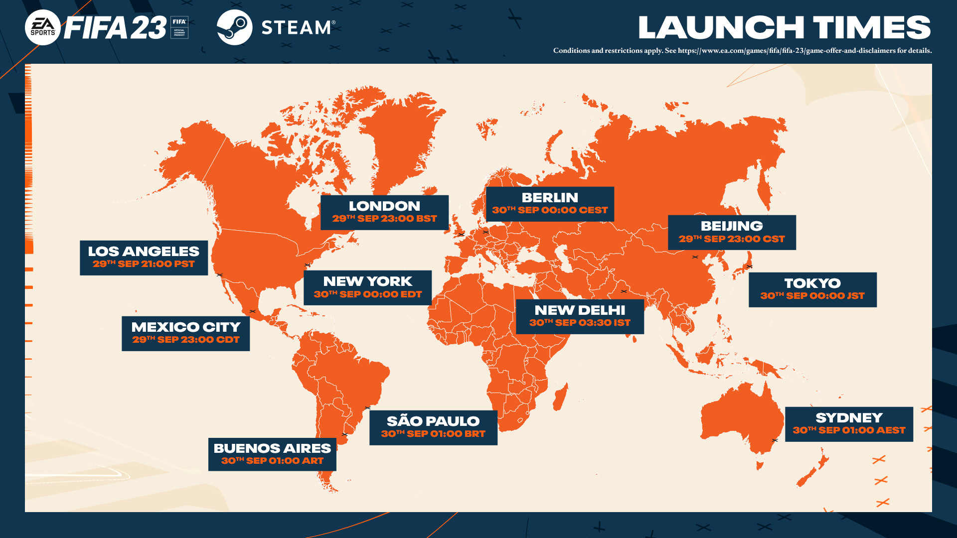 Check out the world map below for detailed dates and times when FIFA 23 is launching on Steam so you'll know exactly when your new season starts.