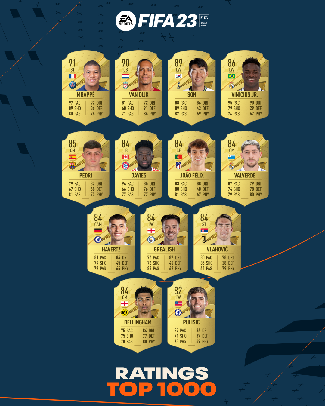 The World’s Game, filled with the world’s best. Out of the 19,000+ players in EA SPORTS™ FIFA 23, who do you think deserves a place at the top? Check out the official top 23 ratings and have your say. 👉 https://x.ea.com/74389 https://store.steampowered.com/app/1811260/fifa_23/