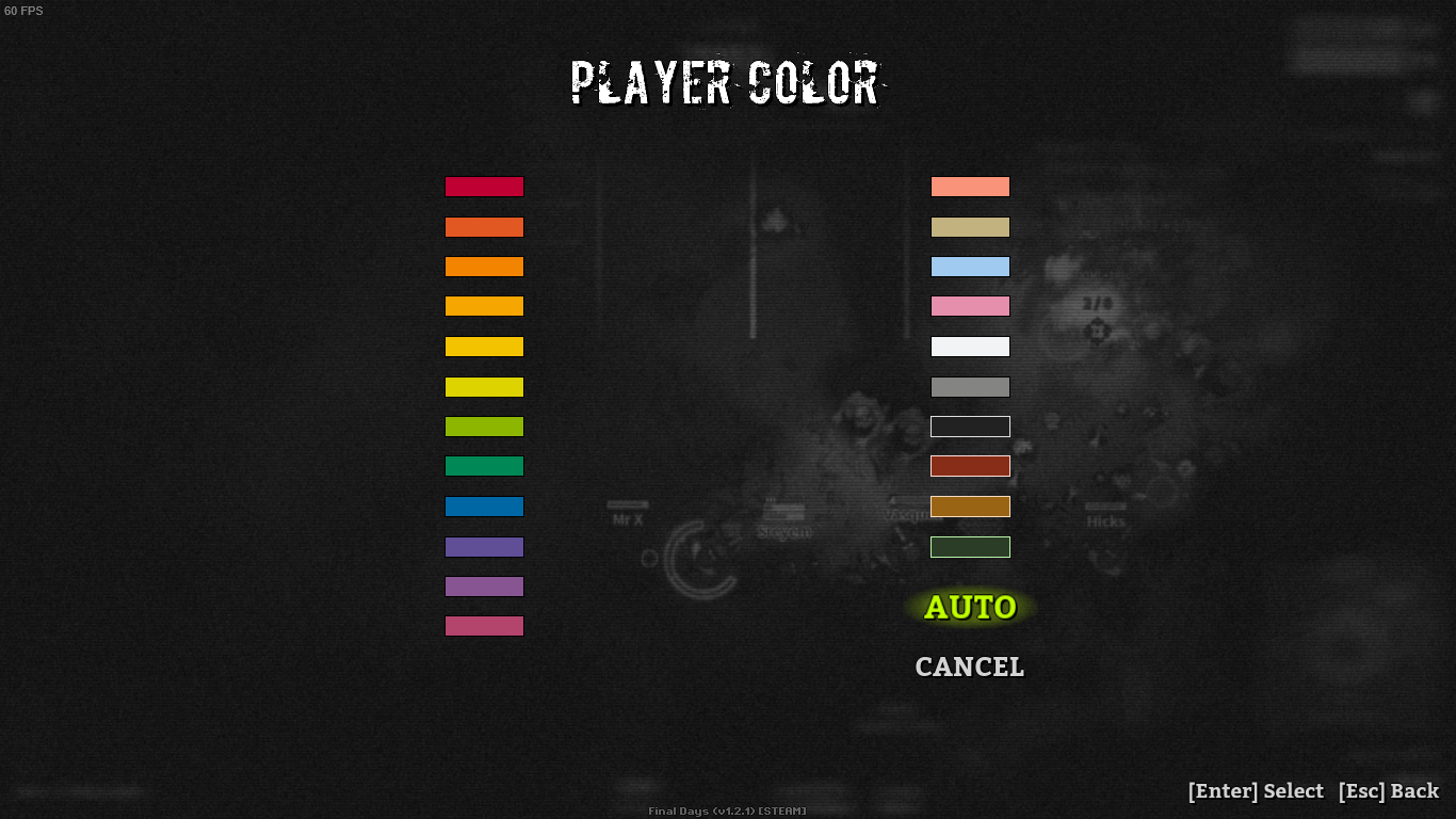 I've just released a minor update to Final Days which allows you to select your players color!
