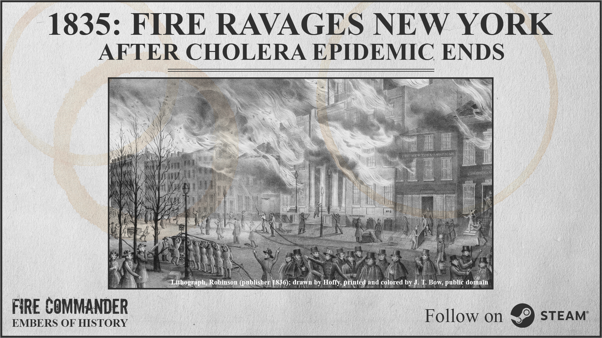 This was a sad time for New York. The city still healing from a cholera epidemic suffered a winter fire that covered 17 blocks. It all started in a warehouse, with strong winds spreading the blaze.