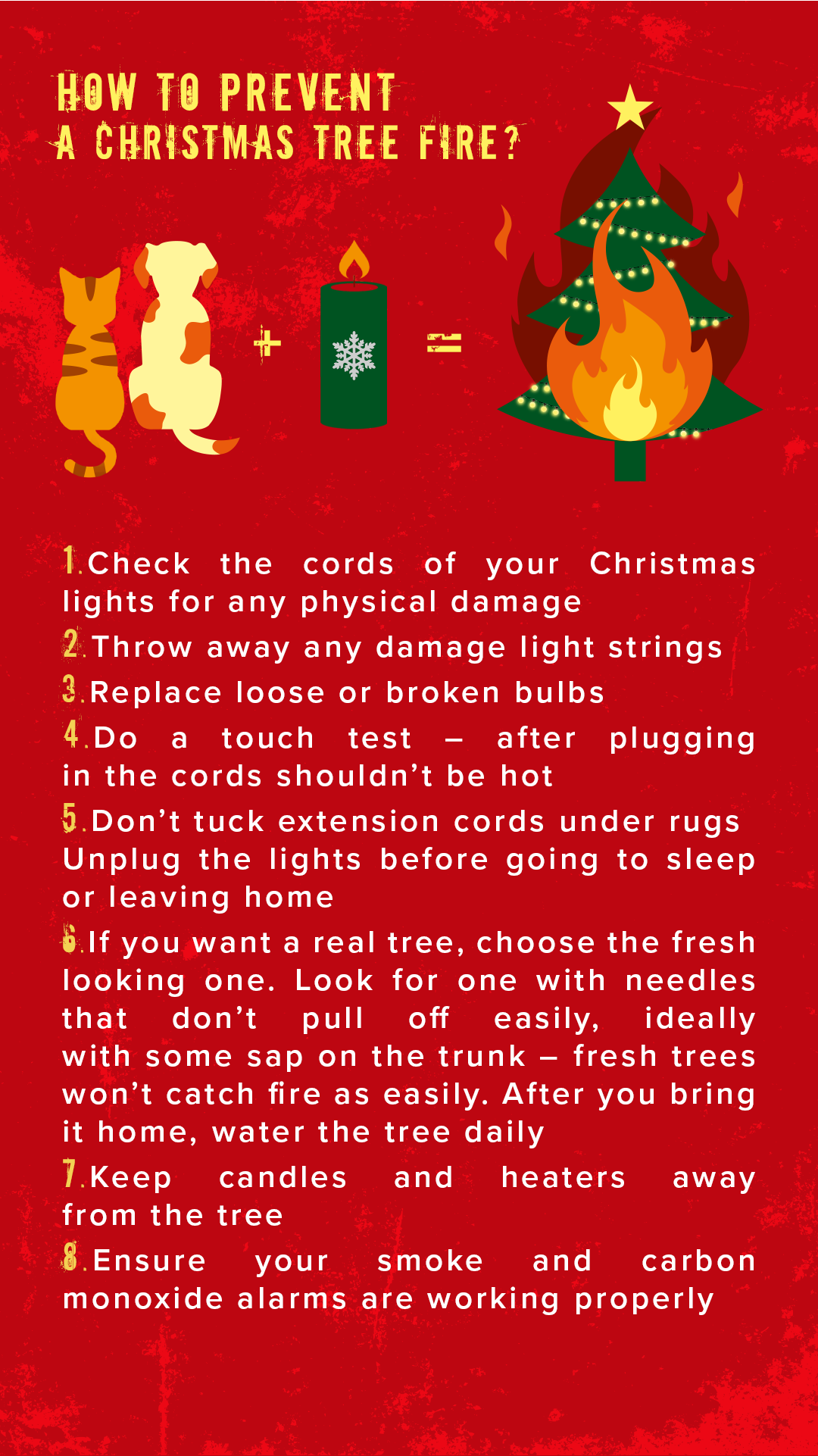 Logical, right? But what to do when your cat/dog/child accidentally pushes a candle over and the tree catches fire?
