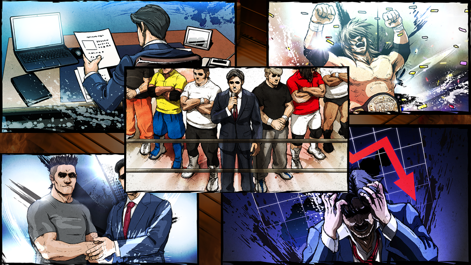 Call the shots as manager of your own pro wrestling promotion! Build up your team of talent from local heroes to living legends. The world is yours for the taking.