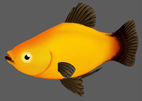 The next fish we are going to replace in the upcoming week is the Sunburst Platy and the Guppy. This actually amounts to 4 new fish. The colourings and body shapes can differ quite a lot between the genders. This should mean that once we have replaced all the current fish in the game there will automatically be more visual variety in player's aquariums even though there are the same number of species. After the current species have all been updated we will focus on adding entirely new species to the game.