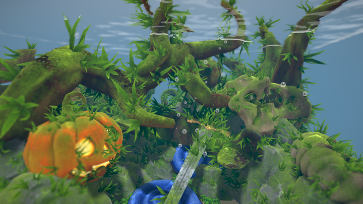 As algae levels increase a new algae texture appears on the surface of objects in addition to the plant like tufts that we added last week. You can see in this image that the airstone objects do not get covered in algae. Our reasoning for this is that they are quite important objects that need to be easily identified by players and because they blast gas bubbles our from their surface it does not allow algae to settle and grow.