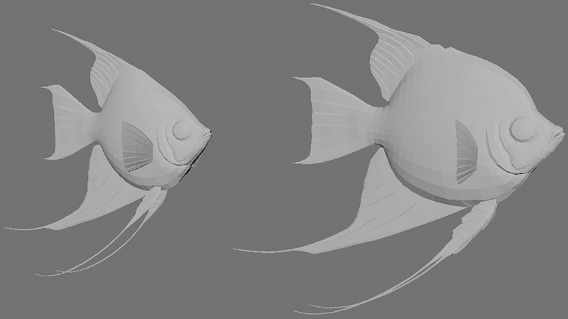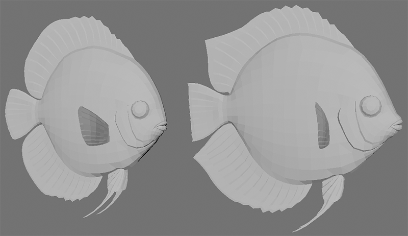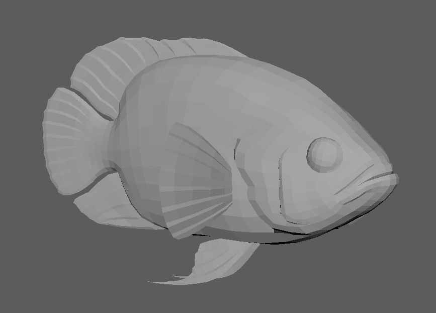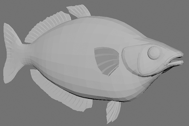 That turned out to be a good thing because upon opening the model file this week I saw that it was in need of a partial remodel. A year ago we were a lot more conservative with the polygon count but since then we have been able to squeeze more performance out of how the fish are animated and can now use more polygons per model. Now it is ready for painting (again) and we hope to get this lovely game into the game soon.