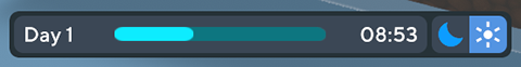 The barebones version of the day cycle has been added. You can see a little ui in the bottom left of the gameplay screen. What it shows is the age of your aquarium on the left and the current time of day on the right. There is a little progress slider in the middle that shows the progress through the day.