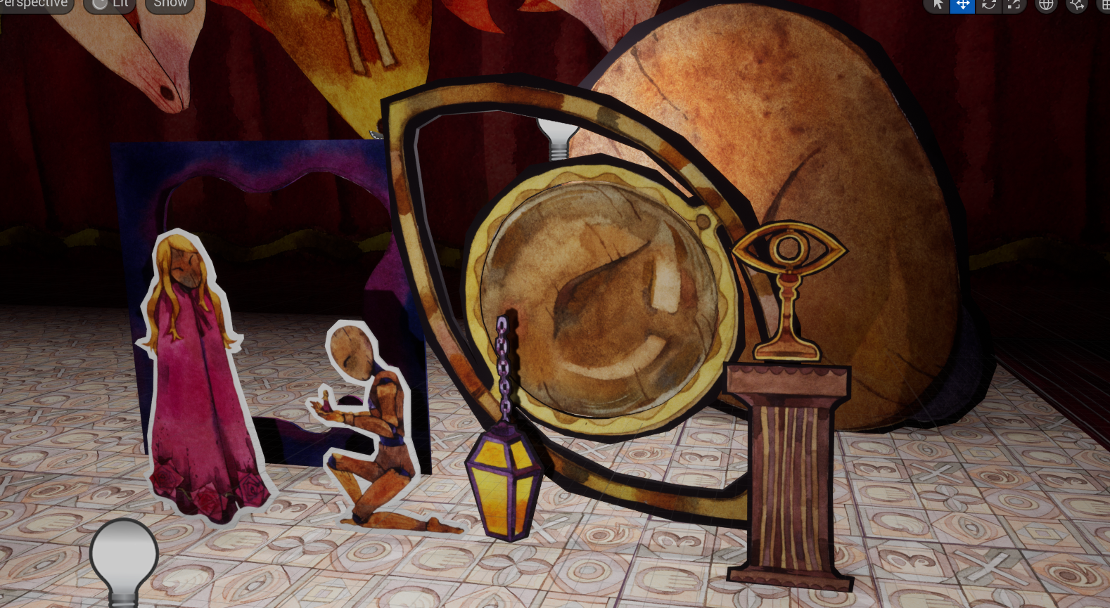 We are introduced to the tales of Flawless Abbey through a play performed by these cardboard dolls — and they can be found all over the game. Just like in dreams, you can’t seem to remember any specific facial feature in any of the characters. With no face nor personality, It seems like they have been drawn by the Abbess and forced to participate in this…