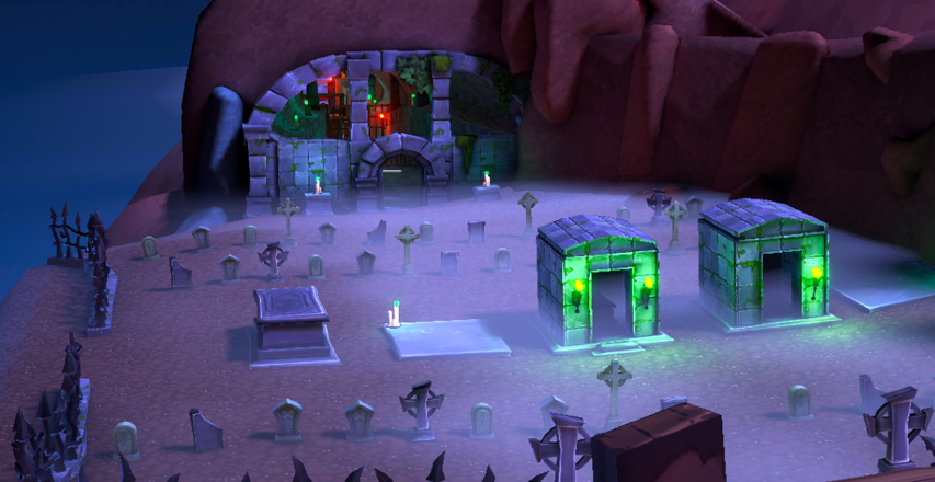Levels - 9 levels have Halloween decorations, moody lighting, and spooky fog. - All levels have additional Undead Traps to hinder teams and Witch Brooms to help teams that aren’t in first place.