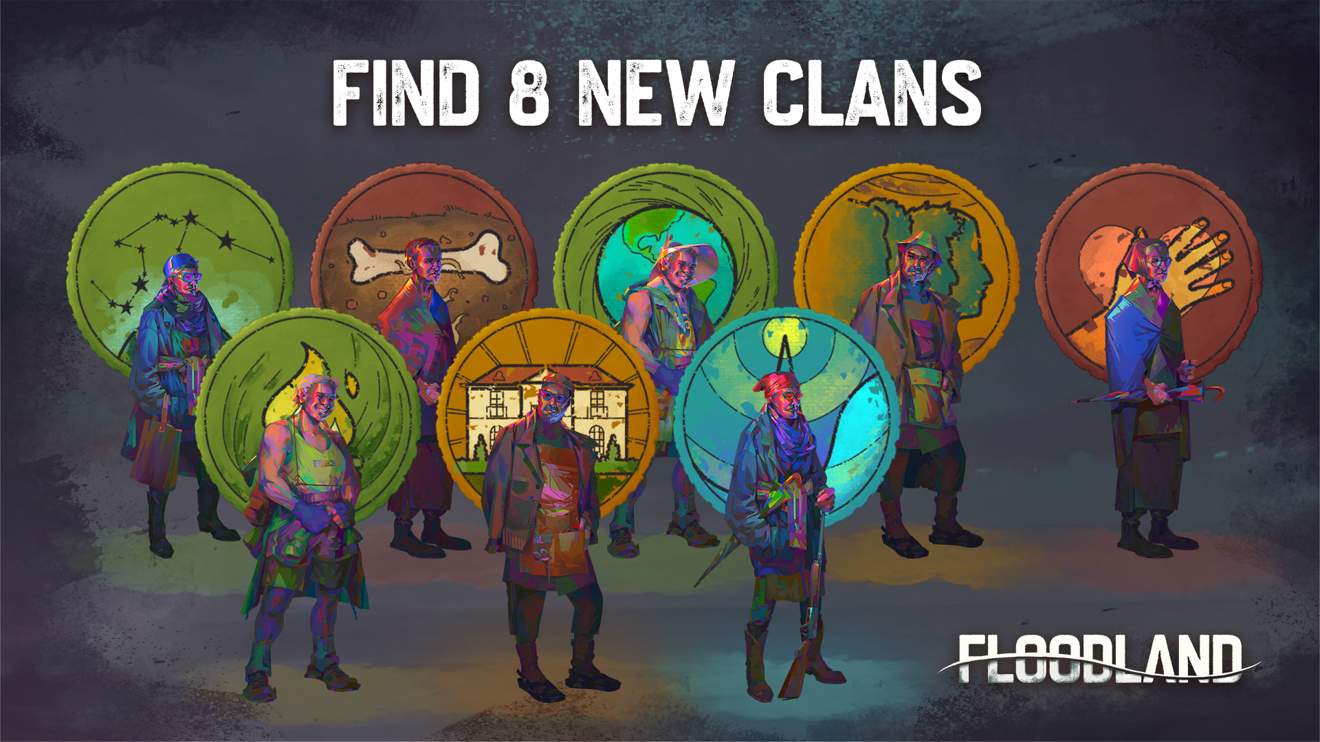 From out there among the drowned ruins of old comes word of eight new clans to be discovered. Four can be selected as a starter clan when you begin a new game and four are out there, surviving. Each represents a binding ideology that has kept them alive this far. Fronted by a leader who will express the clan's story and the different traits the clan possesses.