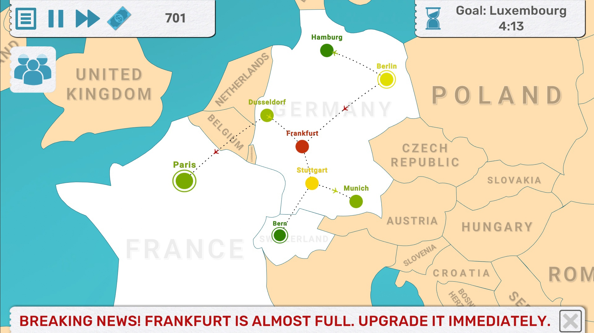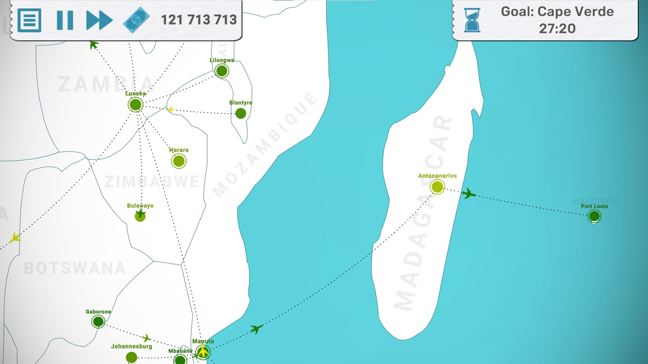 - Added two new territories: Cape Verde and Mauritius. - Implemented active pause. Now you can suspend the game at any time to build new routes, launch planes, upgrade infrastructure and so on. - Now there are five save slots instead of three. You were asking for it, we made it. - Fixed "That was close!" achievement. - Now if you save with overcrowd timer active, the timer will not reset to 5 seconds but continue from the point it was on upon loading the save file. - Some other minor fixes.