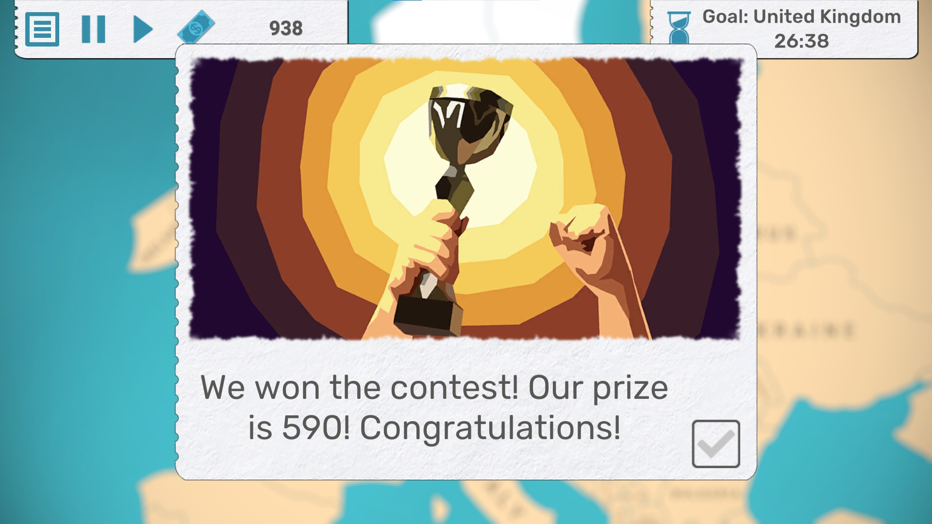 Also: - Fixed color of Lesotho after it was unlocked. - You can no longer start Free Mode from Cyprus, Jamaica, Salvador, Rwanda, Burundi and Guinea-Bissau. - Fixed a problem sometimes causing the plane to appear outside of the city if it was bought on active pause. Now it appears in the city. - Removed bonus for completing "Unlock the whole world" without saving. This mode is very long to fully complete, rendering this bonus senseless. - Fixed a problem with active pause in the Tutorial. - Other minor improvements.