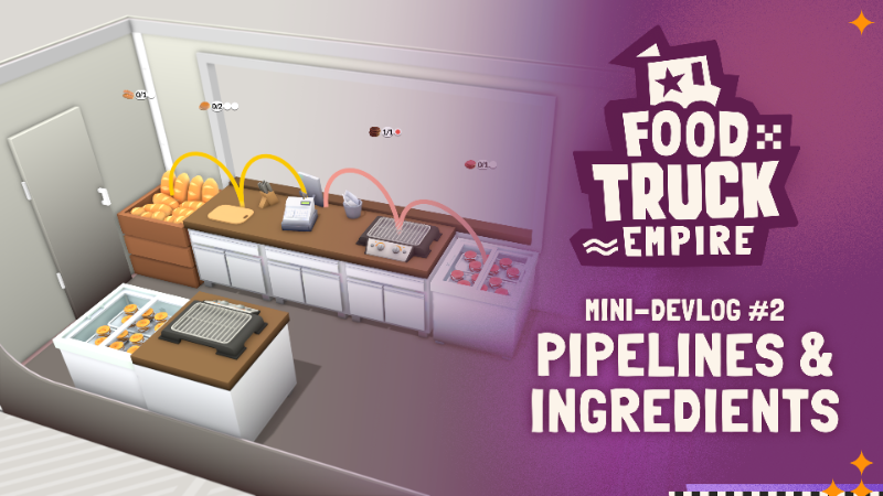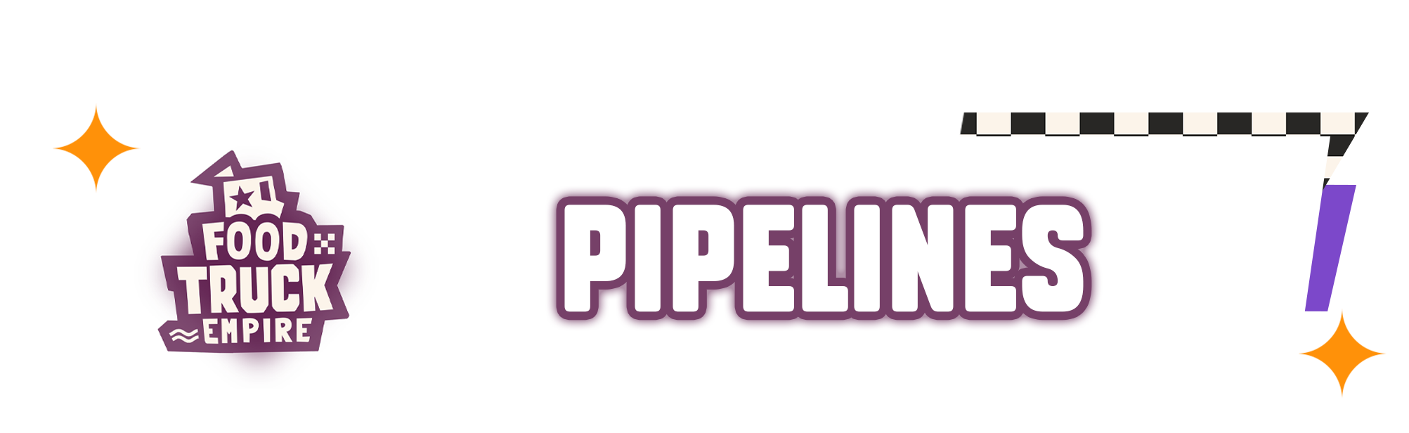 Pipeline is the way you design how work happens within your food truck. It's the cool and fun lines you might have seen within the food truck on our streams or on screenshots; lines that start at the basic ingredients and slowly go through many different phases and inventory pieces. Those lines symbolize the road that your food takes before it's fully processed and ready to be ingested.
