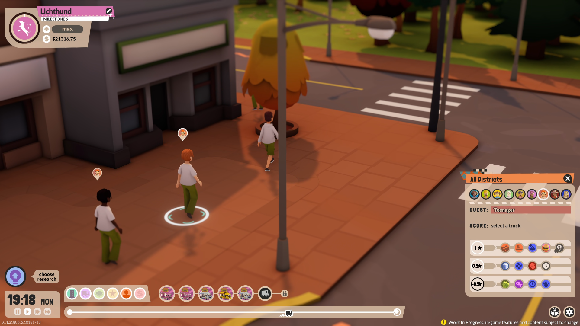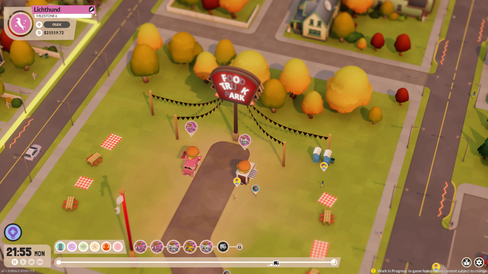 When you're managing your trucks you're given a seemingly simple choice - either scout the city and find the right place to park your truck and capitalize on the citizens in vicinity OR use food truck parks to try and extend the area of effect for your trucks. The catch being - food parks are stationary objects and posting your truck inside them forever will mean that you're limiting yourself to a certain area. In a way you'd be sacrificing your mobility for extended range of influence.