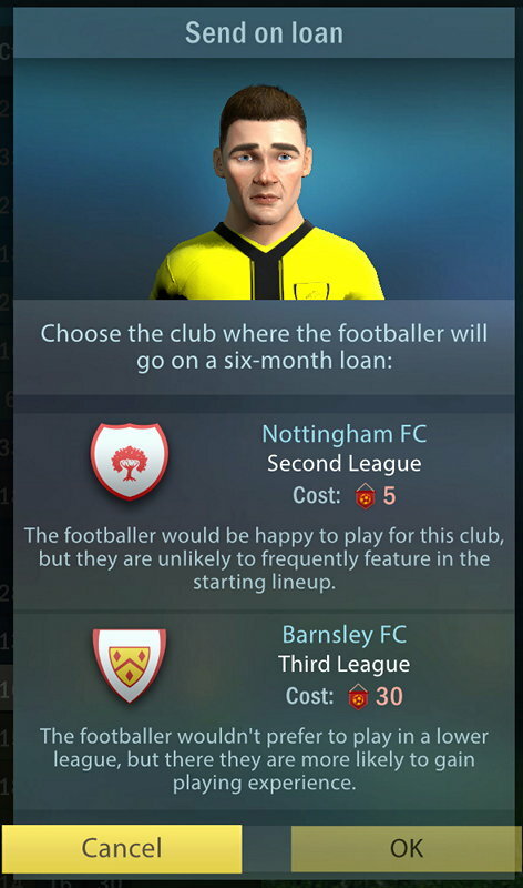Screenshot from dev build: as you can see from the screenshot - it is cheaper to send the footballer to a higher league club, but he will barely have any chance to play.