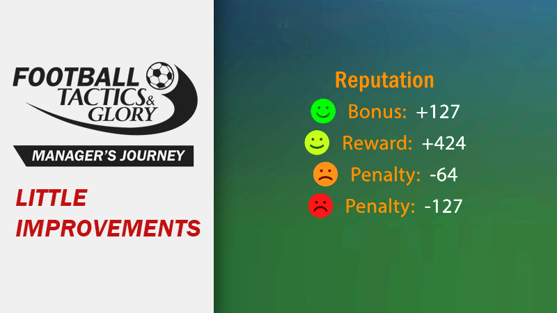 Earlier, when a coach got a new uneven level, a choice between Money and Glory was available. But if the contract came to an end, the player did not need either Money or Glory. We've added a third option - Reputation. Now you can choose between Money, Glory or Reputation.