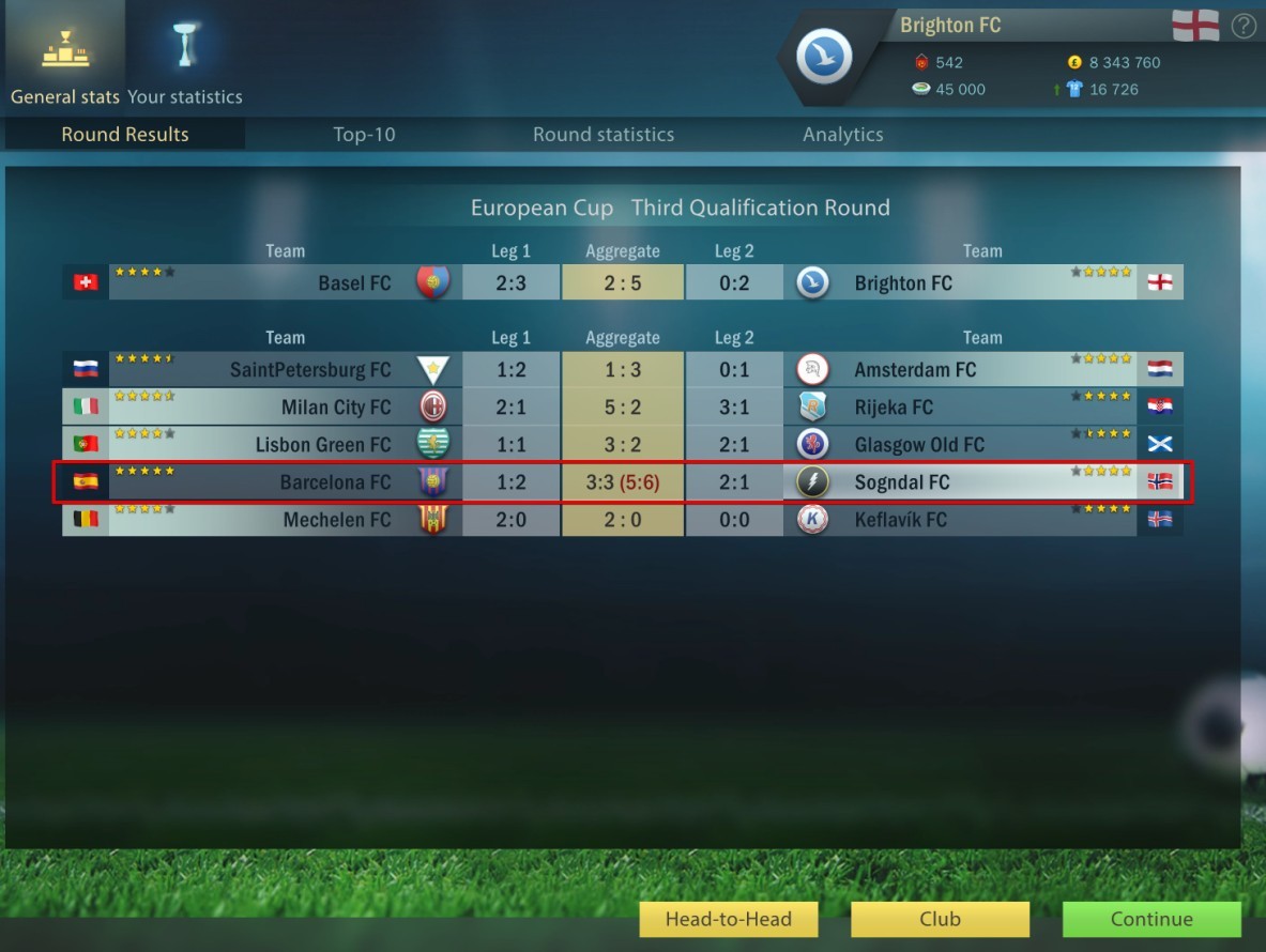 The irony of fate was that in the same season in the European Cup group stage, one of the rivals was Sogndal. It is a significantly weaker club than most Spanish clubs. Not even compared to me. Therefore, I didn't have a doubt that I will play better than AI in the previous season.