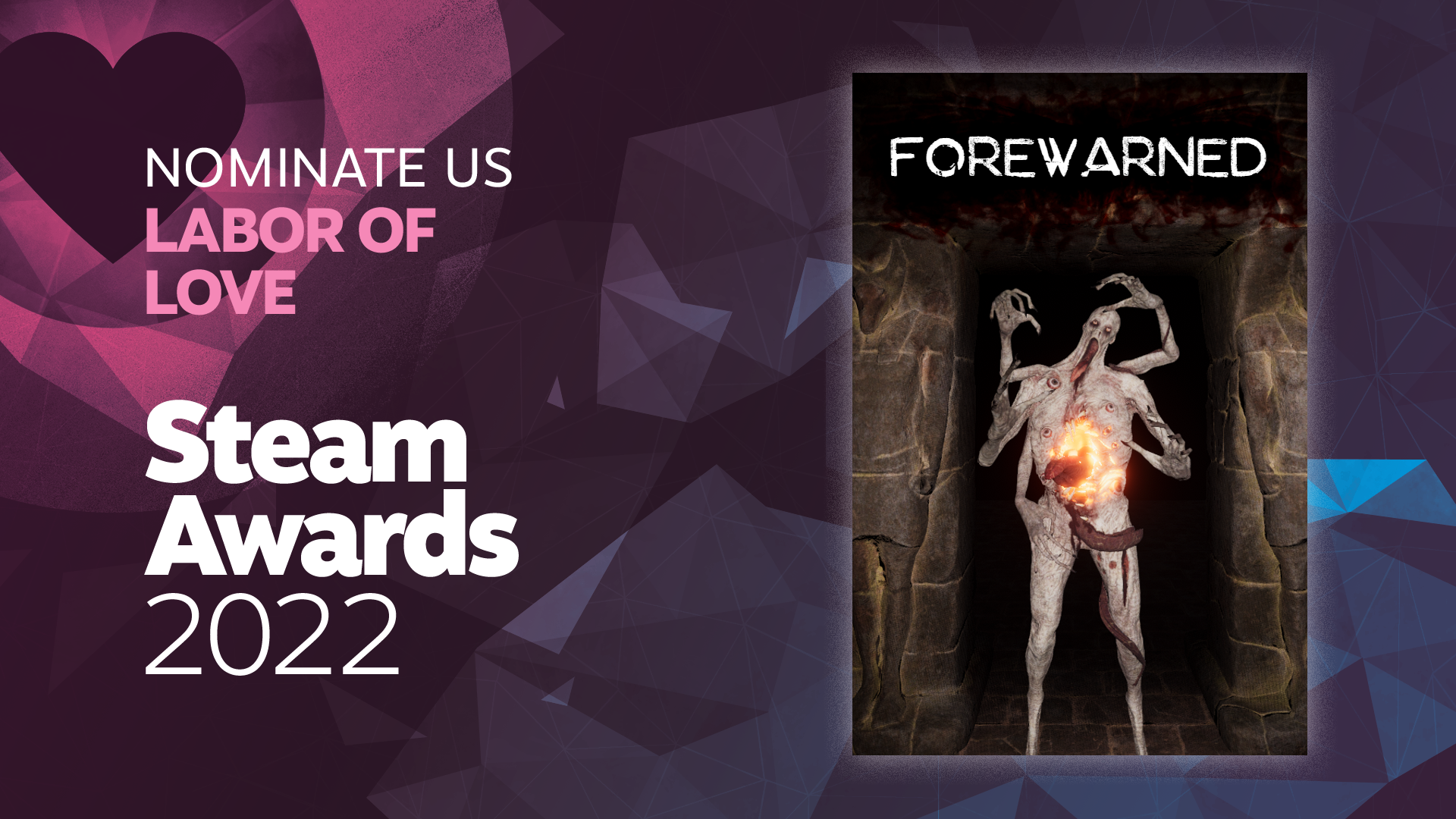 We would be honored and humbled to receive your vote to nominate FOREWARNED in this year's Labor of Love category: "...The team is well past the debut of their creative baby, but being the good parents they are, these devs continue to nurture and support their creation. This game, to this day, is still getting new content..."