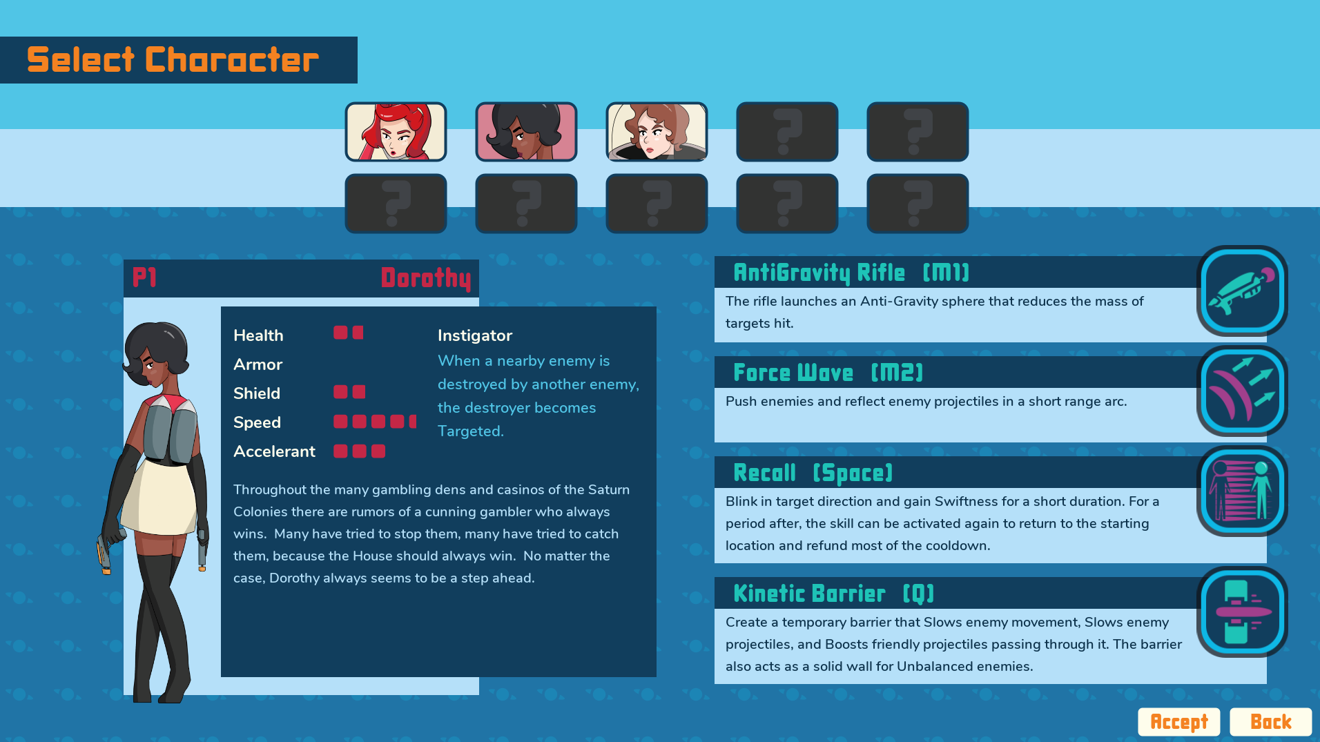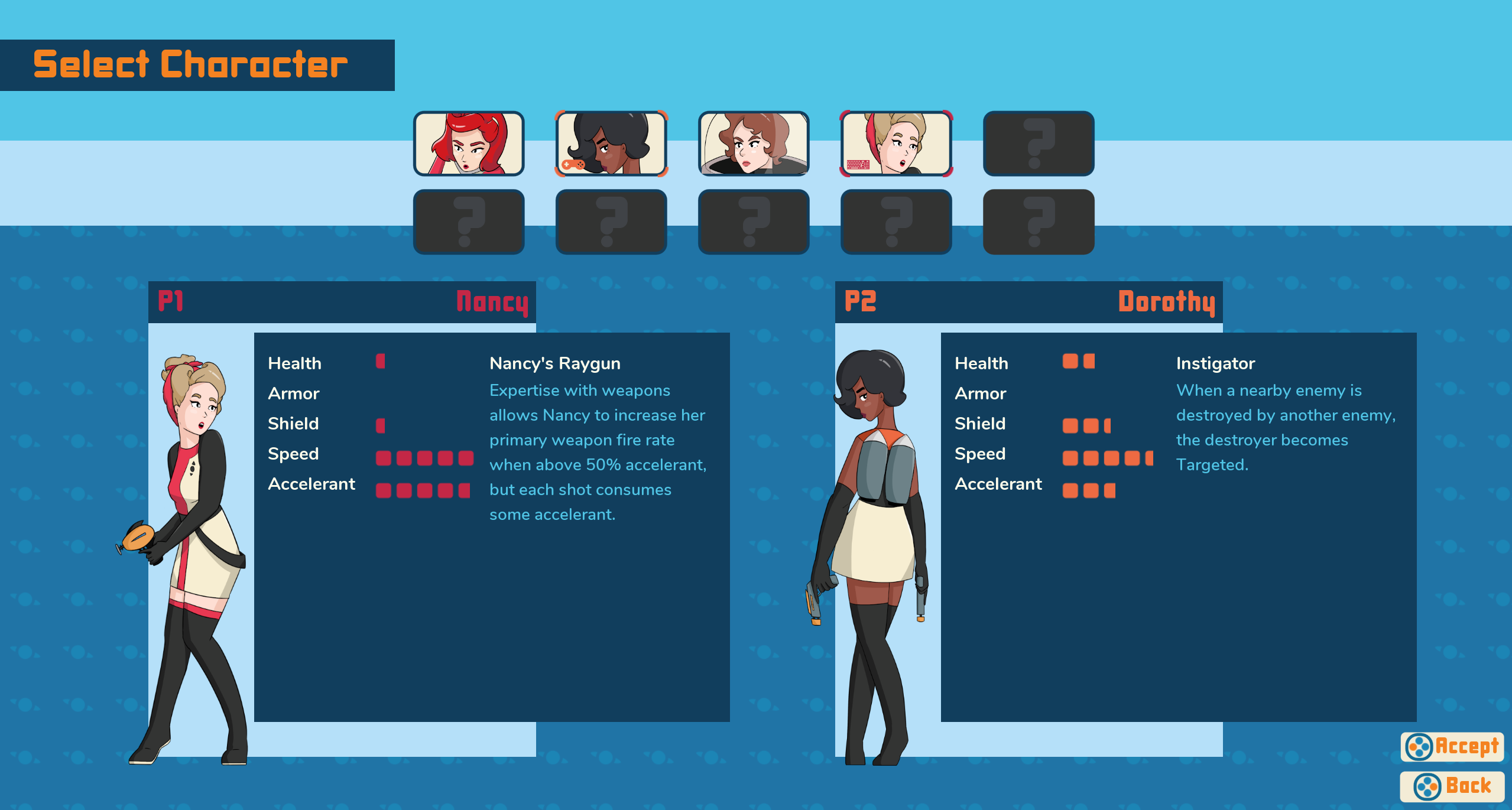 On the loadout selection screen you can mix and match different rayguns and skills to discover the playstyle that fits you best! I wanted to provide and interface that feels simple to use for new players, but also has a lot of depth for the players who really want to get into character build optimization. Hopefully I achieved that!