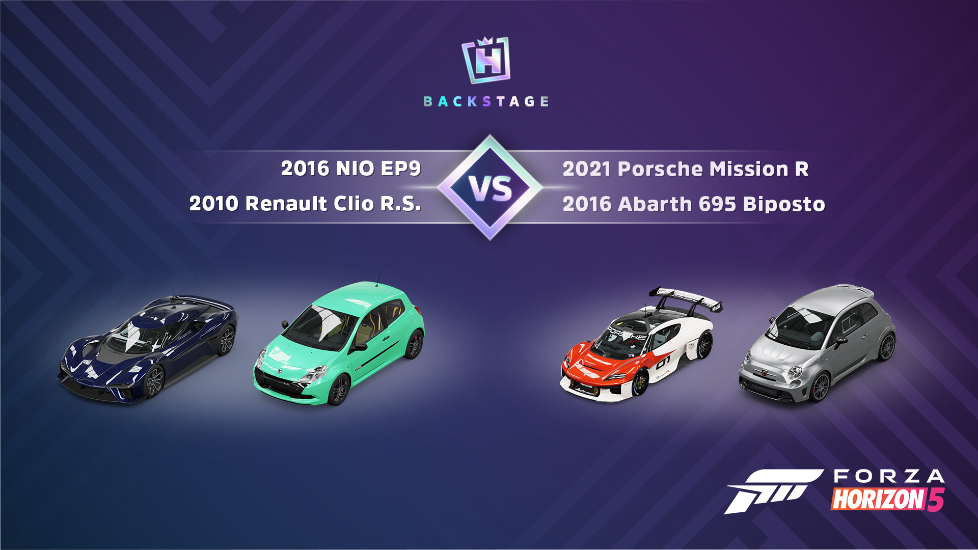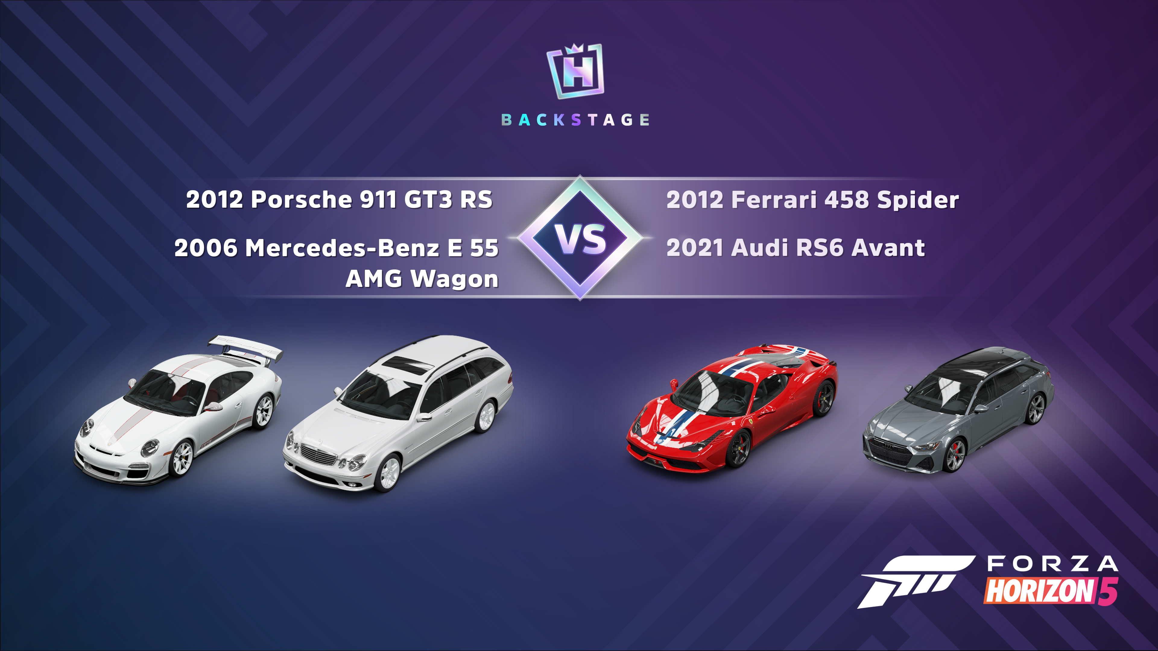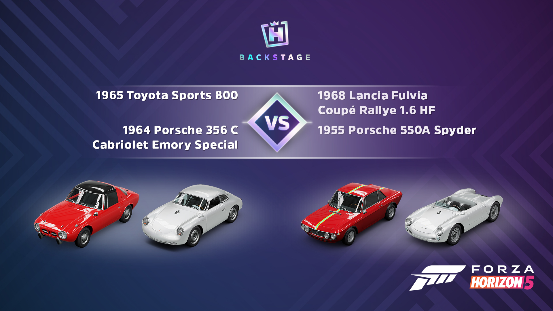 Four supercar greats cross paths in this week’s Backstage Vote! Pick your favorite duo and spend your well-earned Backstage Passes adding the winner to your garage next week.