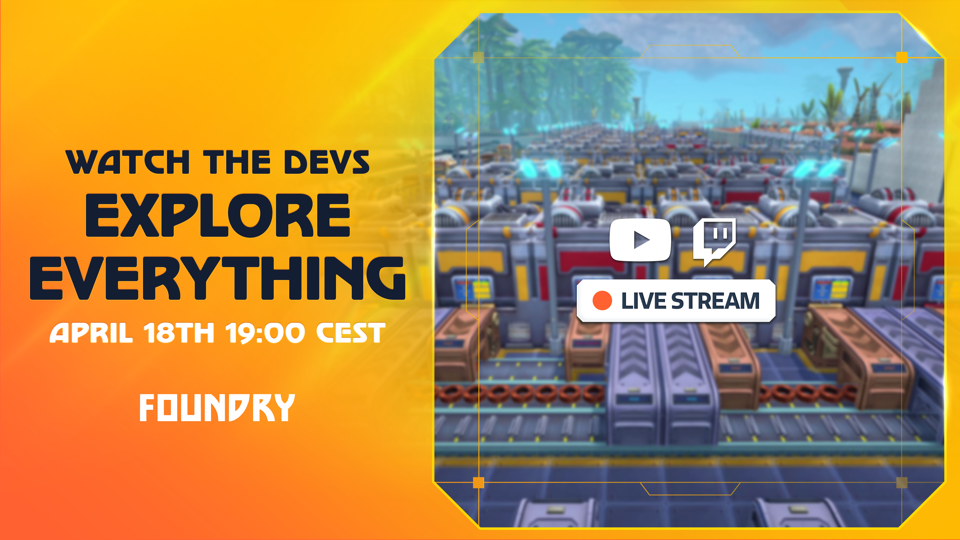 We have another wonderful Dev Stream happening today! Join us today (April 18th) at 19:00 CEST on Paradox Twitch and FOUNDRY YouTube, as the developers visit the beautiful Biomes of FOUNDRY and explore!