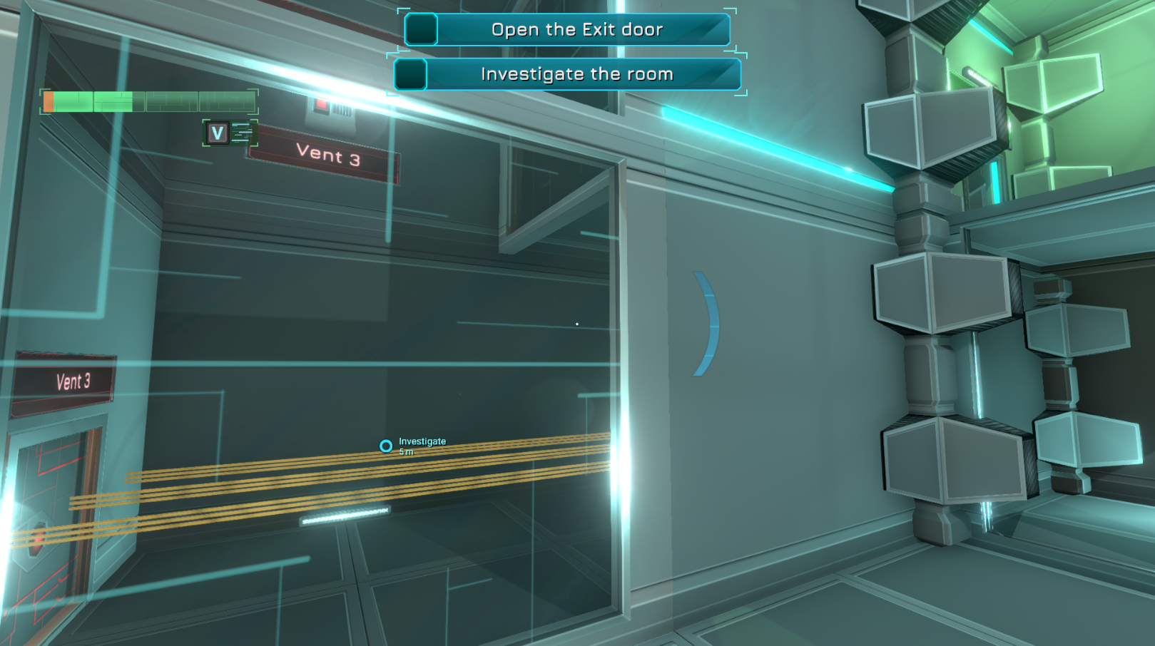 We are keeping objectives as general goals like “Open the Door” or “Find an Exit”, and we rarely provide step-by-step help in order to avoid making the game too easy.