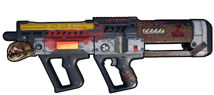 A built-in stock and grip keeps the Bobcat steady when firing and brings spread down to a minimum, but it can also be modified with similar muzzle & magazine attachments to the Straug AR. Unlike the Straug however, it allows for different attachable scopes, up to and including the Hawk’s Eye or 4x Scope.