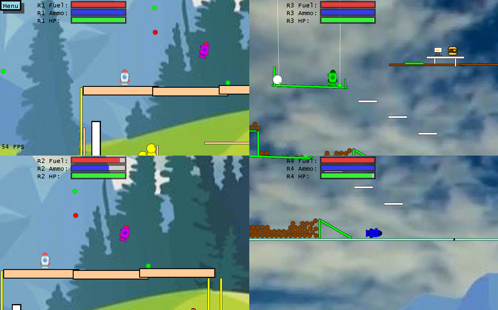Also in any level with split screen / multiple Rockets, you can select Keyboard or which controller controls easily by pressing esc or start and hold mouse over the rocket you want to control and press any key on any controller and it will auto assign that device to control that rocket