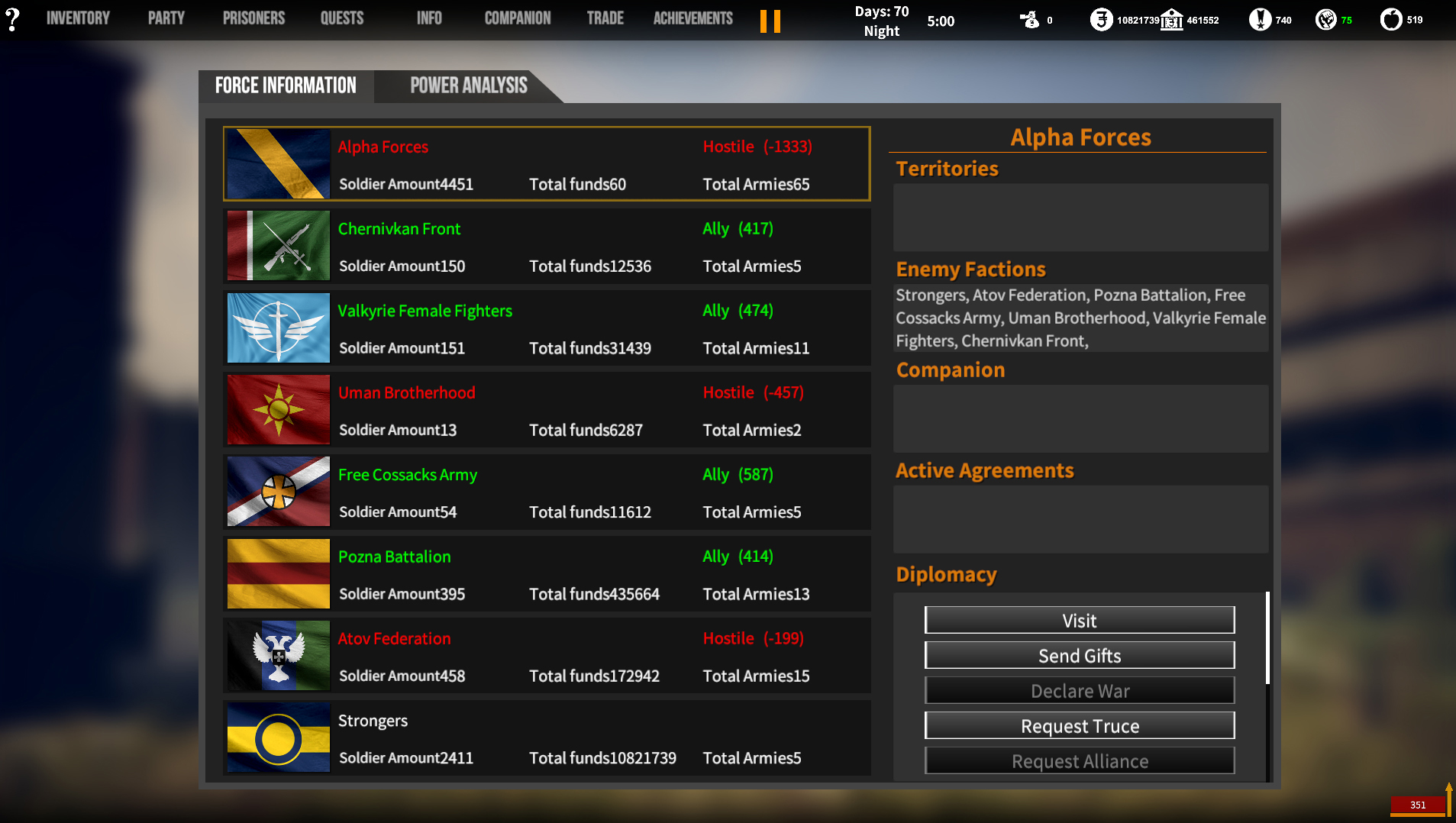 Increased the chance of winning some ammunition as loot after winning. Increased the frequency of other factions attacking bandits. Reduced the spread of shotguns, improved accuracy, increased the damage of shotguns. Fixed the bug that bullets pass through enemies at close range. Fixed the bug when enemies die their icon doesn't disappear. Fixed some companion dialogue bugs and recruitment tasks bugs. Added more daily history texts. Optimized some UI. Optimized English and Russian localization. Fixed the bug that friendly AI kills friendly AI. Nearby friendly soldiers will target the player's current target. Optimized the soldier's visual range. The snipers will spot the enemy much easier. Optimized the AI suppression fire accuracy based on their level. Optimized the balance of the item system and increase the value of individual items. Optimized the loot system. Fixed the bug that soldiers suddenly appear or disappear. Fixed the "white texture" bug.