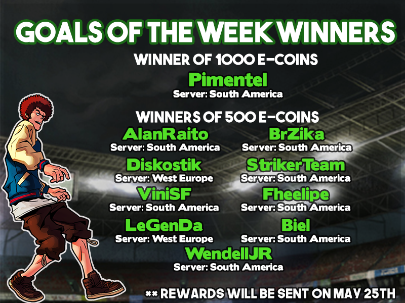 Here are the winners of the Goals of the Week Facebook Event.
