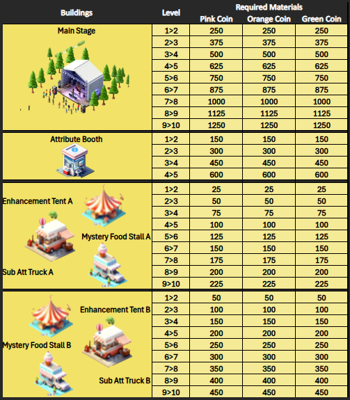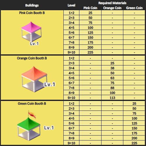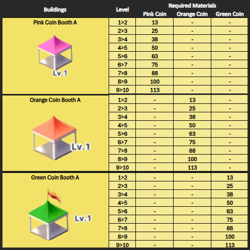 5. If all your buildings reach a specific level, the level restrictions will be lifted, allowing you to upgrade them to higher levels via "Festival Expansion." (Expanding Festival at least once will allow you to gift your owned coins to new/returning accounts without limit.)