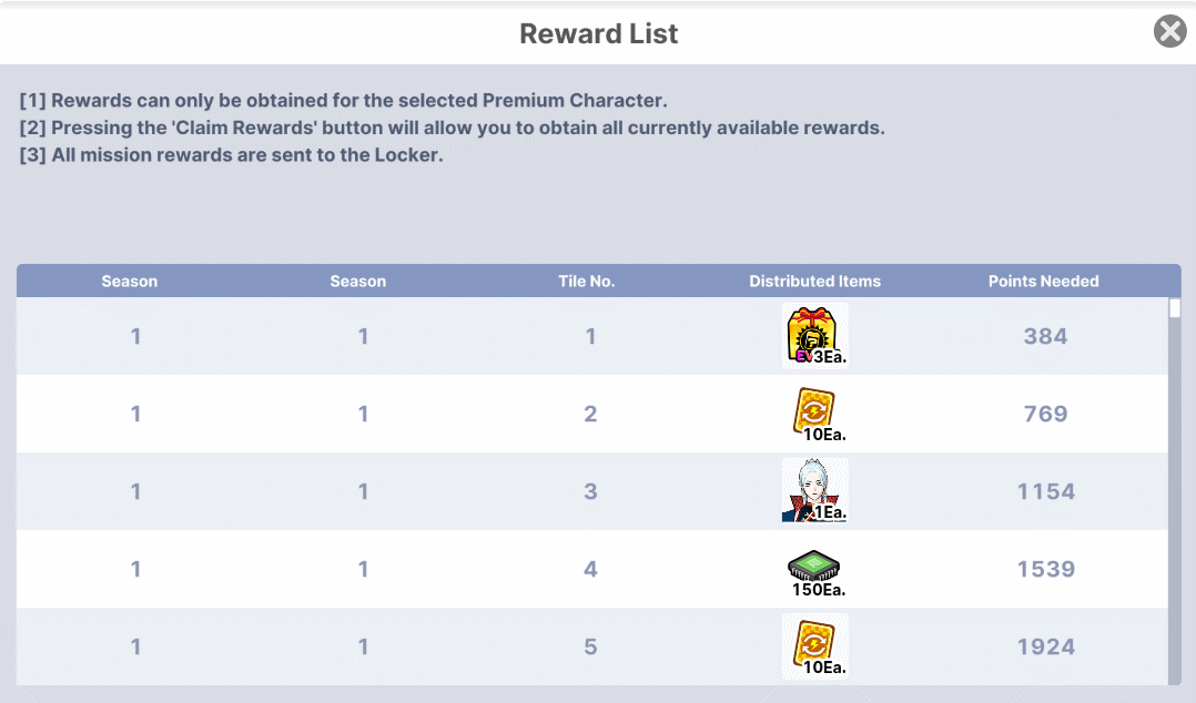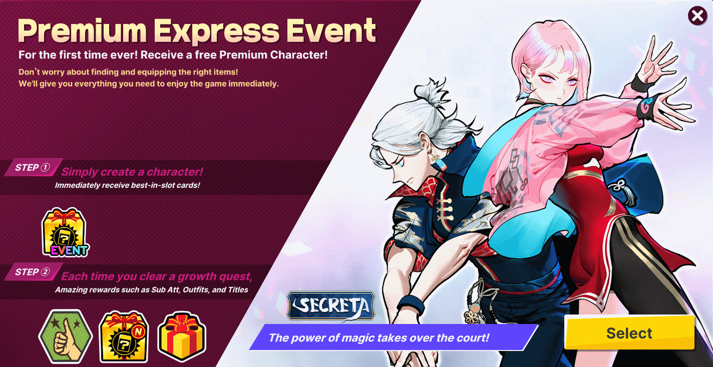 1. Select your desired character and receive a character coupon. 2. Create the premium character and participate in the missions. 3. Clear missions and receive generous rewards in the Locker room.