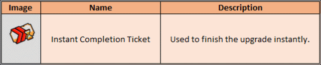4. If building upgrade or item production time is too long, you can use Instant Completion Tickets to finish instantly.