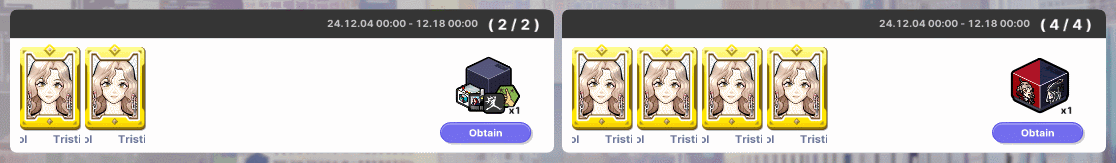 December Special: > Join the My Pick and Eternal Night Pick Up Event to grab Tristia’s exclusive Event-Limited Collection Symbol. Collect symbols from these events to get your hands on the 'Fully-equipped Tristia'.