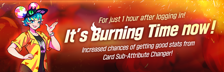 [color=yellow orange]12. Card-Sub Attribute Burning Time[/color] Turn up the heat and stack your deck with unbeatable attributes! The burning time is now, and it's your moment to shine! During this exclusive event, the odds are on your side—experience increased chances of scoring the best options when shuffling attributes. [Link] [color=yellow]https://freestyle2.joycitygames.com/news/notice/18859[/color]