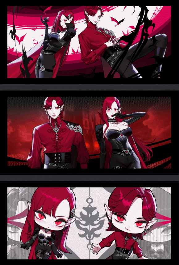 Whispers spread of beings who defy the passage of time. Vesper and Tenen, with their red eyes, red hair, sharp fangs, and pale skin, are said to be eternal entities.