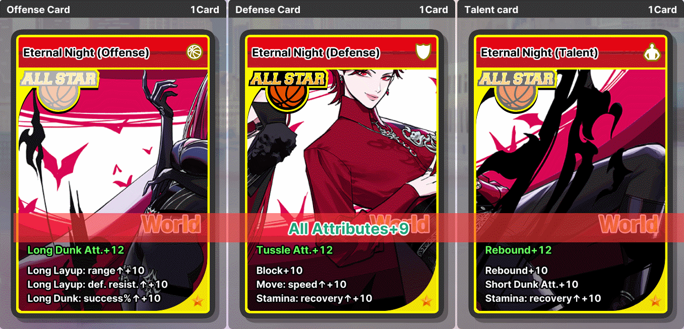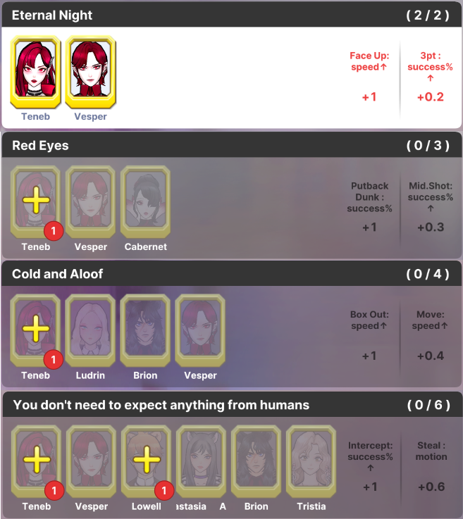 3) Roulette Buff Application Scope - The probability is applied to each character individually. Note: If both Teneb and Vesper characters are in the team, the results for Teneb and Vesper will be applied separately.) - The buffs applied to the "Eternal Night" characters during the match stack with stat increases and buffs from Hikari/Yuzuki, Astra Corporation team characters, and Stray Levels team characters.