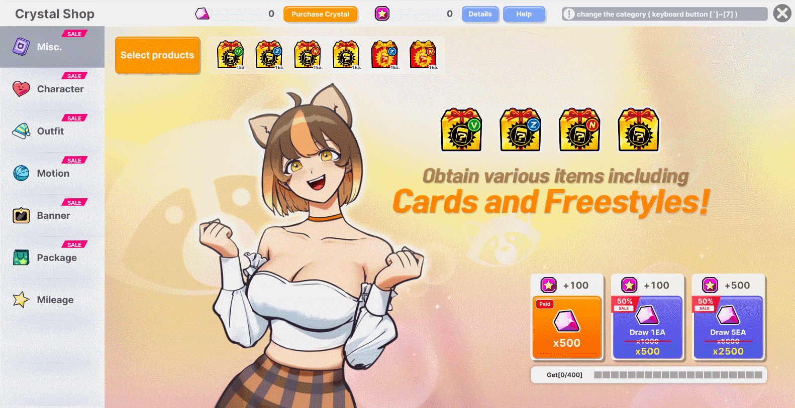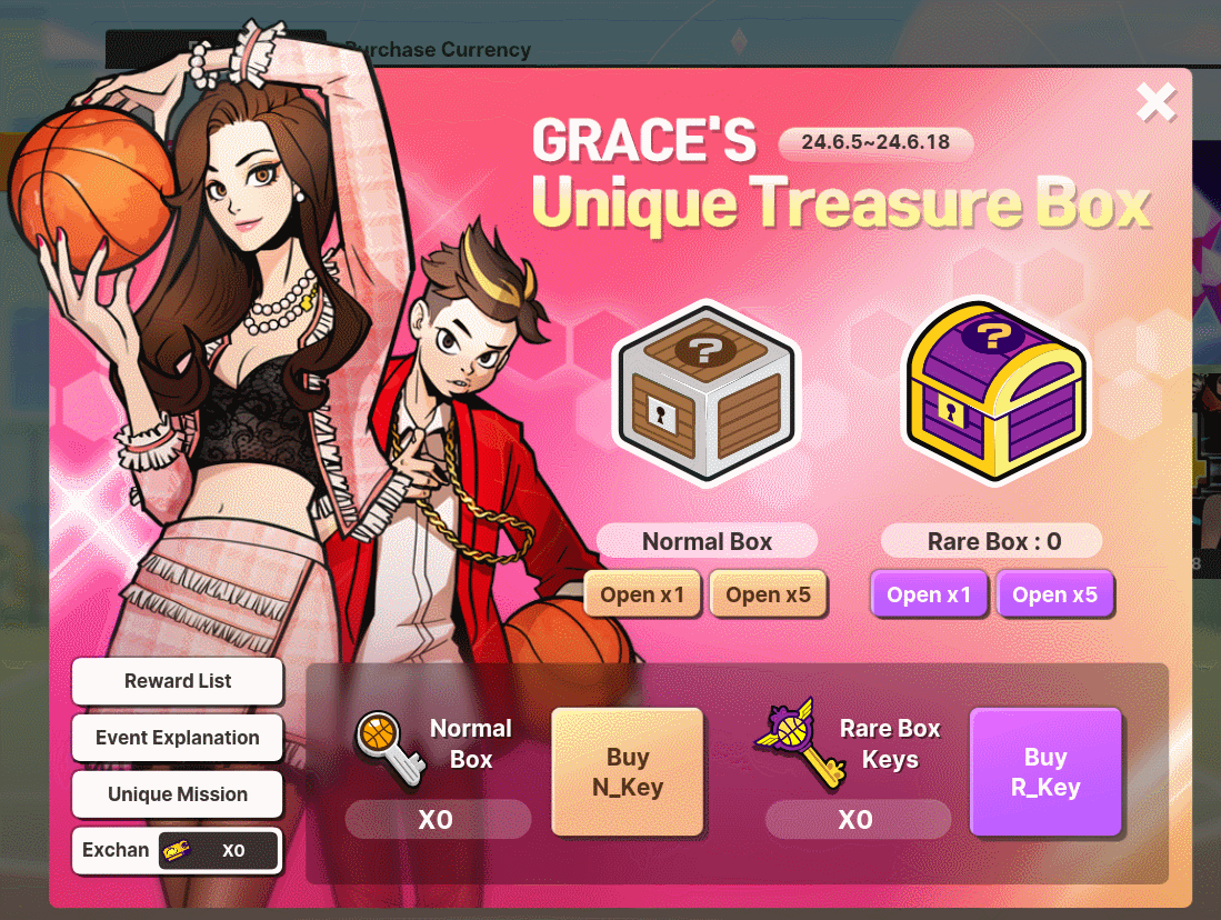 - Normal and Rare Keys can be purchased or obtained as a reward by completing Unique Missions. - Rare Key can only be used if you have a Rare Box available. - Rare Box can be obtained by using Normal Box Keys or completing Unique Missions. - Unique Missions resets every day. (00:00 Server Time) - If you open a certain box, you'll earn Mileage points. (Normal Box: 1 Mileage / Rare Box: 2 Mileage) - Earned Mileage can be exchanged for your desired item at the Exchange Shop.