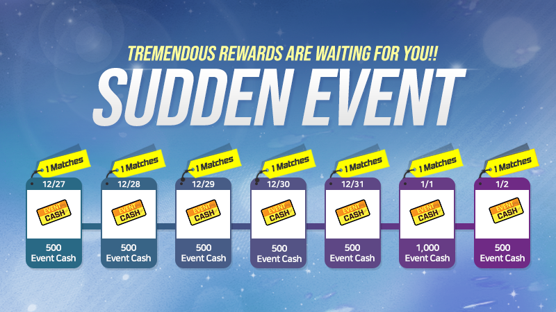 1. Special Winter Sudden Event Add extra excitement to your gaming experience with the New Year Sudden Event! Play just one match each day during the event period, and you'll be rewarded with exclusive Event Gkash! It's as simple as that! Link: https://freestyle2.joycitygames.com/news/event/18397