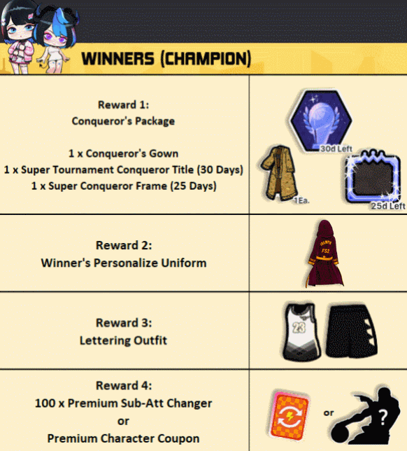 [color=red]*The personalized uniform reward for the winner will be distributed individually. *The character name will be engraved on the back of the uniform.[/color]
