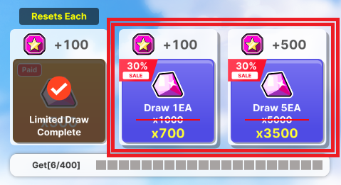 → Enjoy a 30% Discount on Draws! → Now, each 1x Draw costs only 700 Crystals (down from 1000), and each 5x Draw costs just 3500 Crystals (instead of 5000)!
